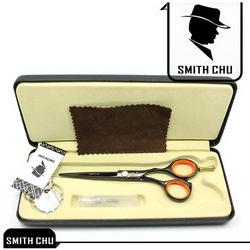 Парикмахерские ножницы SMITH CHU черного цвета с оранжевыми кольцами ручек 14 см